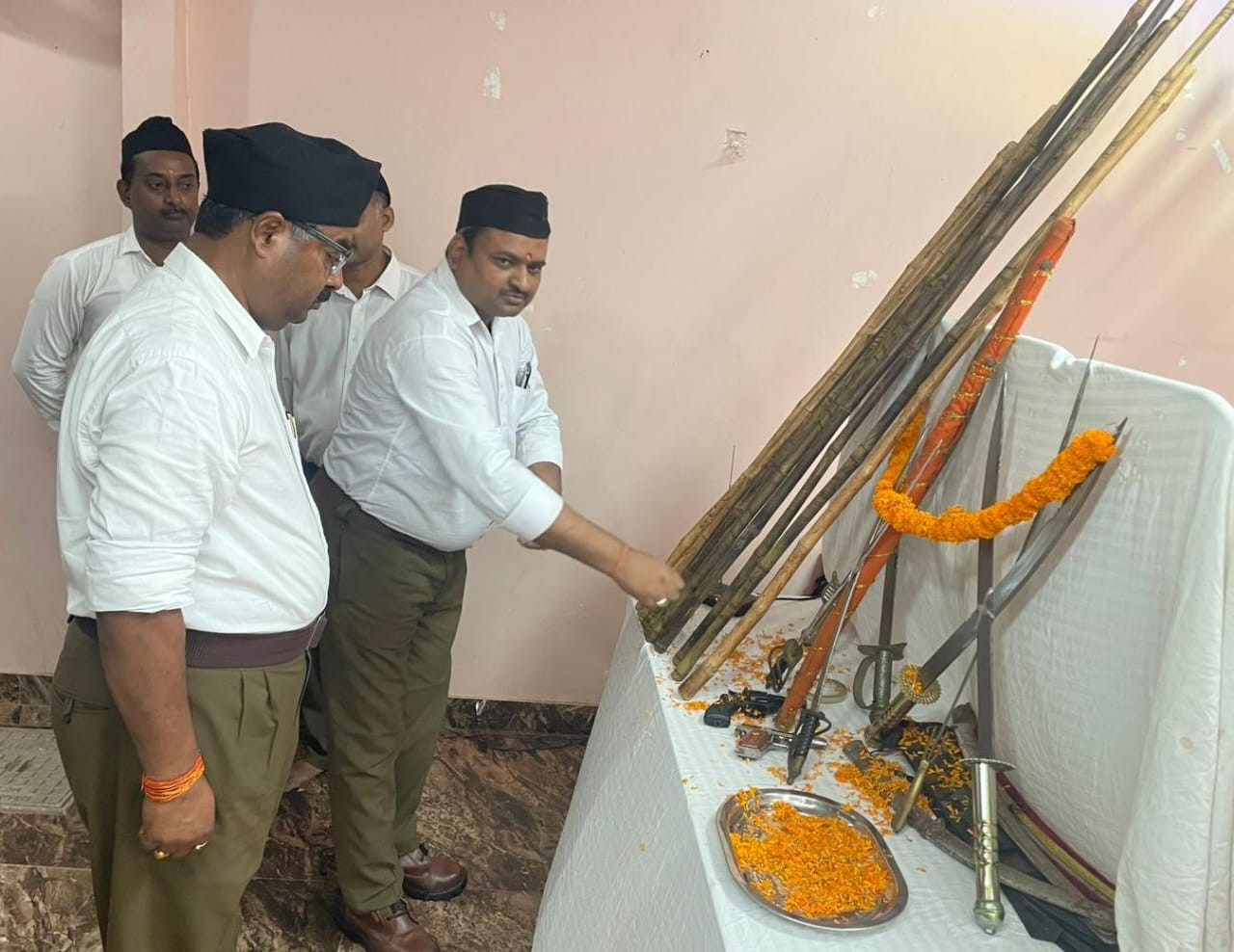 विजयदशमी उत्सव पर शस्त्र पूजन कर संघ का शताब्दी वर्ष कार्यक्रम हुआ प्रारंभ