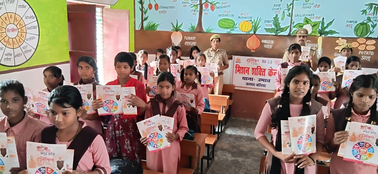 बलिया। पुलिस अधीक्षक बलिया के निर्देशन में मिशन शक्ति फेज- 5 .0 के अंतर्गत थाना उभाव के कंपोजिट विद्यालय पड़री में उपनिरीक्षक सुमित तिवारी, कांस्टेबल नरेंद्र कुमार, महिला आरक्षी रीना तिवारी, मिशन शक्ति टीम के द्वारा बालिकाओं को महिला सशक्तिकरण तथा महिला सुरक्षा अभियान के तहत उनसे संबंधित समस्याओं के निदान हेतु जागरुक किया गया। उत्तर प्रदेश सरकार द्वारा चलाई जा रही विभिन्न योजनाएं तथा उनकी सुरक्षा के लिए बनाए गए विभिन्न कानूनों से भलीभांति अवगत कराया गया और बताया गया कि कठिन परिस्थितियों में धैर्य विवेक एवं संयम से काम लेते हुए अपनी सुरक्षा करें तथा डायल 112,1076,1090 ,102,108 में फोन करके मदद प्राप्त करें। साइबर क्राइम के सम्बंध में जानकारी देते हुए बताया गया कि साइबर ठगों से सावधान रहते हुए किसी प्रकार के लिंक,अनचाही कॉल्स रिसीव न करें।तथा ऐसे कॉल के सम्बंध में तत्काल टोल फ्री नम्बर 1930 डायल कर सूचना दें।