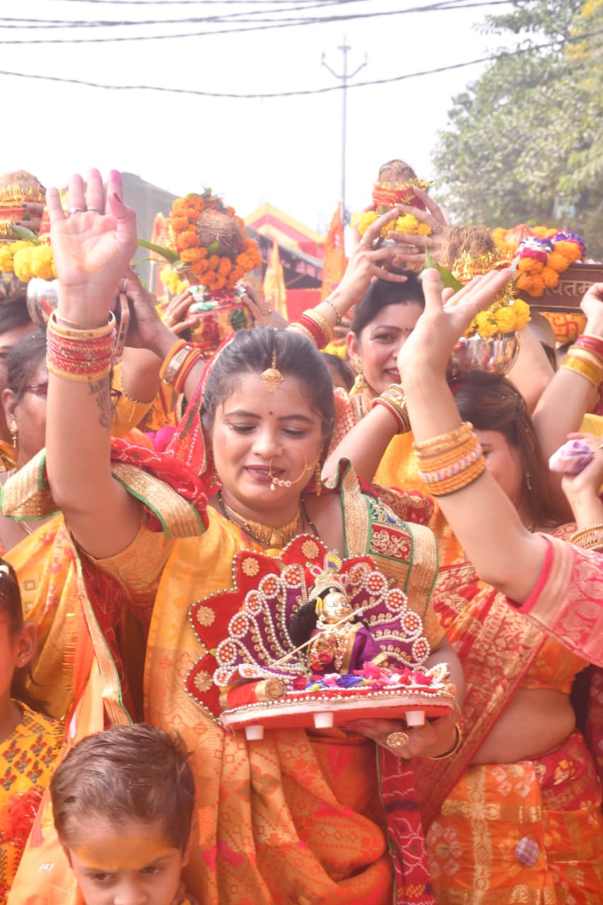 कानपुर, कलश यात्रा पीठ पूजन एवं माहात्म्य कथा से कार्यक्रम का हुआ शुभारंभ नन्हे मुन्ने बच्चों की झांकियां बग्गी पर सवार महिलाओं ने रखा सर पर कलश भगवान के संगीत पर नितृ करते हुए मंदिर तक पहुंची। कानपुर यशोदा नगर स्थित भागवत सप्ताह ज्ञान यज्ञ चारों धाम पूजन एवं गया भोज का आयोजन राजेंद्र प्रसाद गुप्ता एवं पत्नी सुनीता गुप्ता के नेतृत्व में विशाल पंडाल लगाकर भागवत कथा का आयोजन किया जा रहा है।भागवत कथा करने के लिए भगवत रत्न आचार्य श्री अभिषेक जी शुक्ला बादा निवासी द्वारा की जाएगी। कार्यक्रम में मुख्य अतिथि राष्ट्रीय लोकदल नगर अध्यक्ष मोहम्मद उस्मान,कल्लू तिवारी, ब्रजराज सिंह,उपस्थित हुए! इस प्रकरण में कार्यक्रम संयोजक राजेंद्र प्रसाद गुप्ता ने बताया कि एक सप्ताह के कार्यक्रम का आयोजन किया गया है जिसमें गुरूवार, 23 अक्टूबर (प्रातः 11.00 बजे नारद-वेद व्यास प्रसंग कुन्ती प्रसंग भीष्म महाप्रयाण तया परीक्षित-शुक संवाद शुक्रवार, 24 अक्टूबर सृष्टि वर्णन,हिरण्याक्ष वध, कपिलोपख्यान, ध्रुव चरित नरसिंह अवतार शनिवार, 25 अक्टूबर गजेन्द्र मोक्ष, बलि वामन प्रसंग, रामावतार,नंदोत्सव,रविवार,26 अक्टूबर पूतना वध, नामकरण,माखन चोरी लीला,गोवर्धन पूजा,सोमवार, 27 अक्टूबर, महारास,कस वध,उद्धव प्रसंग, रुकमणि मंगल,मंगलवार, 28 अक्टूबर ,स्यमतक मणि कया, सुदामा प्रसग नौ योगेश्वर कथा, पोथी पूजा,बुधवार, 29 अक्टूबर कथा समय दोपहर 2 बजे से साय 6 बजे तक हवन एवं भण्डारा गुरुवार, 30 अक्टूबर,दोपहर 2 बजे से आरंभ होगा! कलश यात्रा में आकांक्षा गुप्ता अंकित गुप्ता शिवांगी गुप्ता ममता गुप्ता शशि गुप्ता सुनीता गुप्ता आशा गुप्ता रंजना गुप्ता सीमा गुप्ता माया गुप्ता 101 महिलाओं ने कलश यात्रा में भाग लिया! कृपा शंकर मिश्रा कृष्ण मुरारी मिश्रा कृष्णा ऋषभ गुप्ता अशोक गुप्ता मूलचंद गुप्ता प्रेम नारायण गुप्ता आदि लोग रहे!