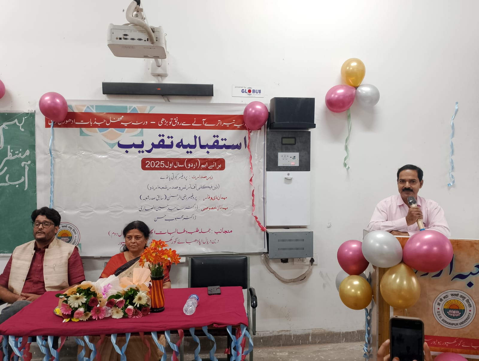 The welcome poem was presented by Naima Nigar, Nazia Nigar, Kulsum Bano, and Anjum Sahar. In his enthusiastic welcome address, Muhammad Rafe, a second-year M.A. student, welcomed the new students, saying, "Today is a day of joy and pride for us as new soldiers join our academic caravan. We hope that all of you will not only gain knowledge here, but also keep the flame of Urdu literature burning through your character and actions."