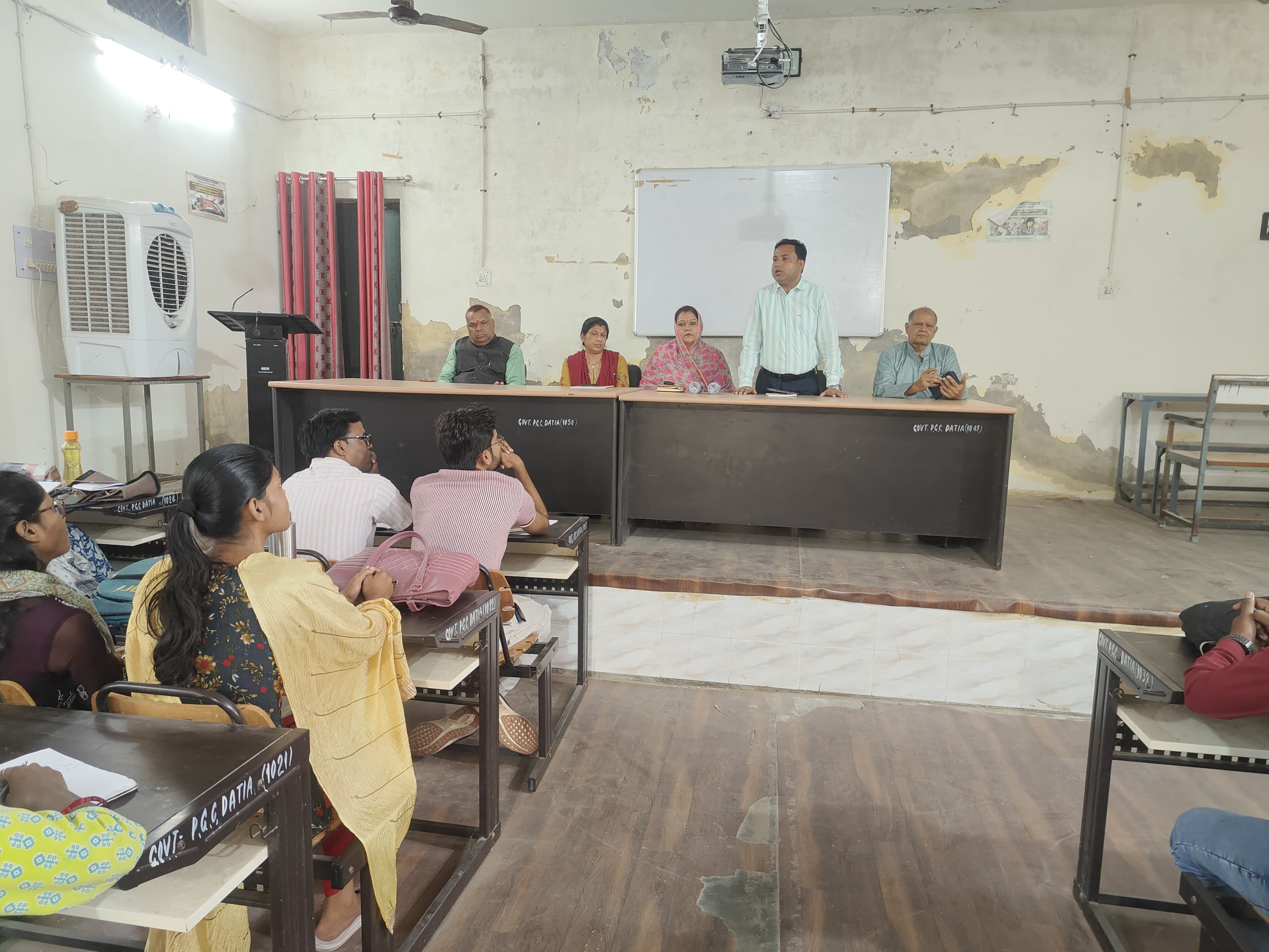 म.प्र. जन अभियान परिषद के तत्वावधान में मुख्यमंत्री सामुदायिक नेतृत्व क्षमता विकास पाठ्यक्रम (CMCLDP) सत्र 2025-26 के अन्तर्गत बीएसडब्ल्यू (BSW), एमएसडब्ल्यू (MSW) की प्रथम कक्षा 26/10/25 को पीजी कॉलेज दतिया में आयोजित की गई।