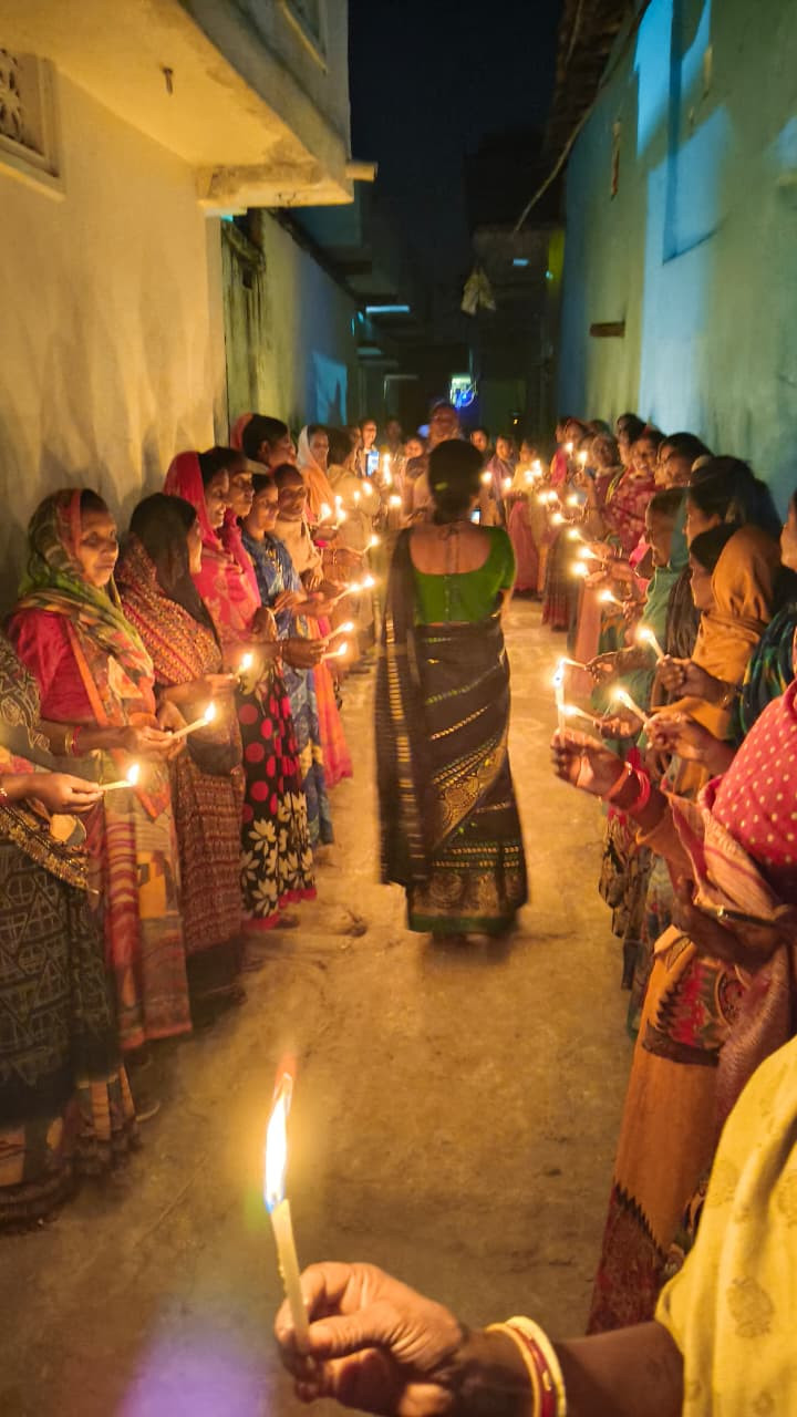 मतदान में भागीदारी को लेकर जीविका दीदियों ने निकाला कैंडल मार्च।