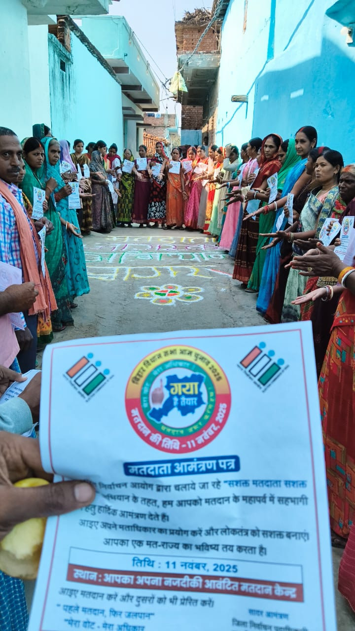 गया जिले के बाराचट्टी प्रखंड क्षेत्र के बीबीपेसरा गांव में आज देर शाम जीविका समूह से जुड़ी महिलाओं ने मतदान में भागीदारी सुनिश्चित करने को लेकर कैंडल मार्च निकाला। समूह की सामुदायिक उत्प्रेरक पूनम कुमारी एवं प्रियंका कुमारी ने बताई की सशक्त मतदाता सशक्त अभियान के तहत मतदान महापर्व में सहभागी होने के लिए जीविका समूह की महिलाओं द्वारा कैंडल मार्च निकाला गया है। कैंडल मार्च के दौरान महिलाओं ने 'सबसे पहले मतदान, फिर जलपान' , 'वोट हमारा है अधिकार, इसे कभी ना करो बेकार' जैसे स्लोगन के साथ मार्च निकाला । इन्होंने बताए कि यहां आगामी 11 नवंबर 2025 को होने वाले मतदान में अधिकाधिक भागीदारी की अपील की। मार्च का नेतृत्व करने वालों में समूह की रिंकू कुमारी ,प्रमिला देवी, रेणु देवी, किरण देवी, कांति देवी, आभा देवी समेत बड़ी संख्या में महिलाएं शामिल थी।