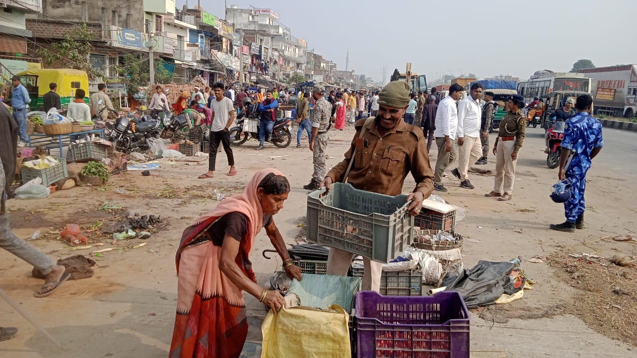 जिले के बाराचट्टी प्रखंड स्थित शोभ बाजार में जीटी रोड पर अवैध रूप से जमें सब्जी मंडी को स्थानीय पुलिस प्रशासन ने आज दोपहर खाली कराया जिससे बाजार में घंटों अफरा-तफरी मची रही। प्रशिक्षु आईपीएस सह थानाध्यक्ष पिंकी कुमारी एवं अंचल अधिकारी अरुण कुमार के नेतृत्व में दल- बल के साथ आए पुलिस बल के जवानों ने सब्जी मंडी में जमे फल व सब्जीवाले को बलपूर्वक हटाया। अधिकारियों ने बताया कि जीटी रोड पर जमे फल व सब्जी विक्रेताओं को छठ व दीपावली त्यौहार के पूर्व में ही सब्जी मंडी को हटा लेने की चेतावनी दी गई थी। वहीं, बिहार विधानसभा चुनाव में इन पर कोई कार्रवाई नहीं की गई। इधर दो दिन पूर्व पुलिस प्रशासन ने सब्जी मंडी जीटी रोड पर नहीं लगाने की भी चेतावनी में दे रखी थी। बावजूद लोग यहां जमे थे। अधिकारियों ने बताया कि जीटी रोड पर सब्जी लगने से एन एच-2 के अधिकारियों को काम करने में बाधा उत्पन्न आ रही थी। वहीं आए दिन भयावह दुर्घटनाओं की भी संभावना बनी रहती थी। अंततोगत्वा प्रशासन ने दलबल के साथ सब्जी मंडी कोजीटी रोड से अतिक्रमण मुक्त करने की पहल की है। इधर जीटी रोड के किनारे जगह नहीं रहने के परिणामस्वरुप फल व सब्जी विक्रेताओं के समक्ष गंभीर संकट उत्पन्न हो गया है। गौरतलब है कि स्थानीय प्रशासन ने सड़क किनारे से अलग सब्जी मंडी लगाने के लिए विक्रेताओं को जगह उपलब्ध कराने की बात कही है।
