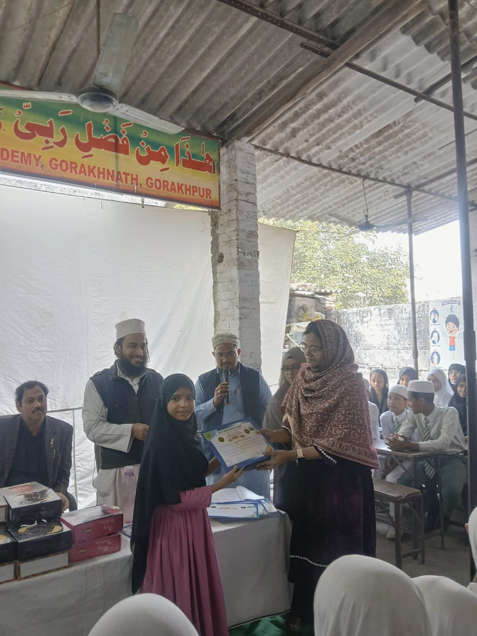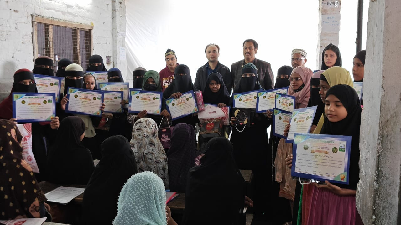 नौरंगाबाद स्थित जेएआई एकेडमी में विभिन्न विद्यालयों में पढ़ने वाले बच्चों में इनाम व प्रमाण पत्र वितरित किया गया। इनाम व प्रमाण पत्र मिलने से सभी बच्चे खुश नजर आए। ओपन बुक कॉम्पिटिशन (द स्टोरी ऑफ हजरत अबू बकर व उमर) के तहत मौलाना आजाद गर्ल्स इंटर कॉलेज, इस्लामिया गर्ल्स इंटरमीडिएट कॉलेज, गोरखपुर विश्वविद्यालय, जेएसएफ जहरा सहित तमाम स्कूल व कॉलेज के बच्चों ने जेएआई एकेडमी में हिस्सा लिया। जिसमें पहला स्थान आहू चश्म निजामी, जिकरा फातिमा, मुबश्शरा नूर, रशीदा जिया, सकीना बेगम, नौशीन खातून, इरम फातिमा, हुमा आफरीन, हस्सान आसिफ ने हासिल किया। दूसरा स्थान फौजिया अली, अल्फिया तबरेज, फातिमा अंजुम, मुसर्रत जहां, फरहत जहां, आयशा, नूरी आफरीन, तरन्नुम खातून, मोहसिना बानो ने पाया। वहीं तीसरा स्थान नूर आयशा, नूर तूबा, शमीमा रियाज, मनतशा, फरजाना परवीन, आबिदा यासमीन, मरियम, इकरा मेराज ने हासिल किया। विद्यालय की शिक्षिकाओं को भी पुरस्कृत किया गया।