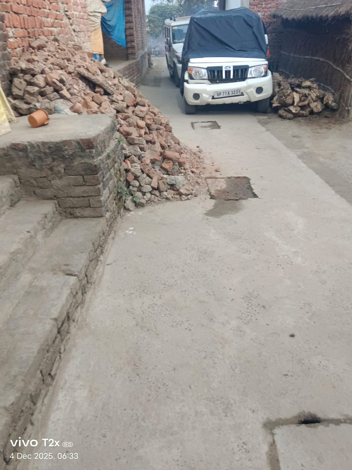सड़क पर वाहन व ईंटों को हटवाने की मांग