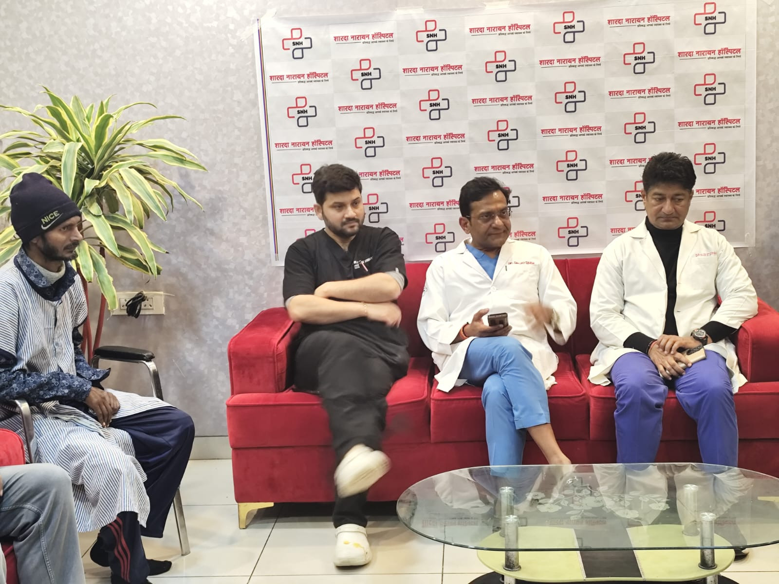 शारदा नारायण हास्पिटल में प्रेस कांफ्रेंस कर चिकित्सकों ने बताई प्रणाली