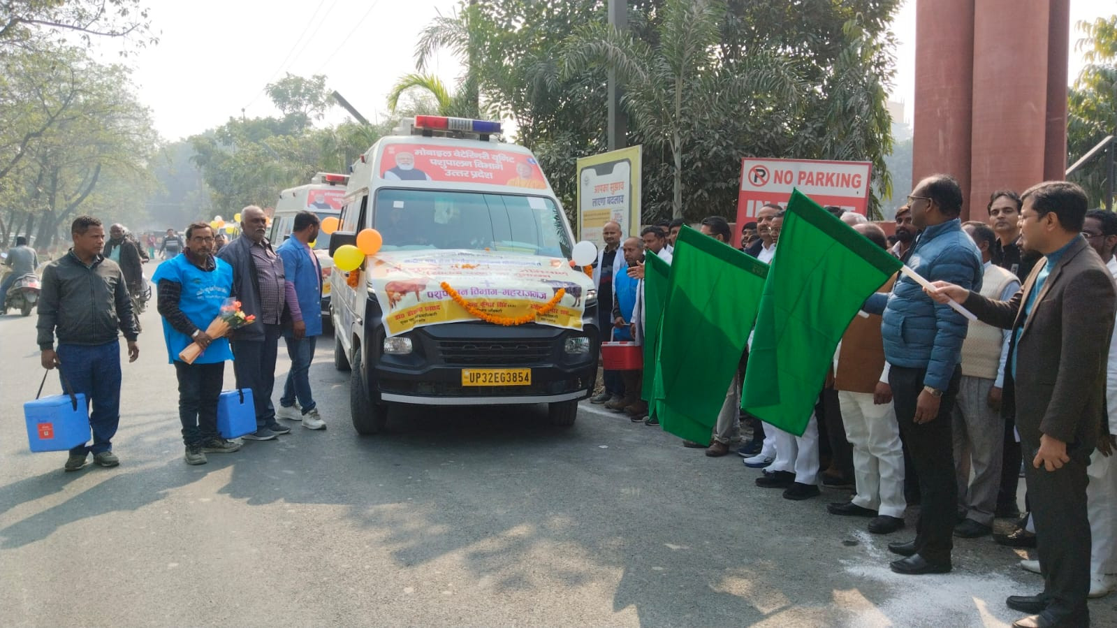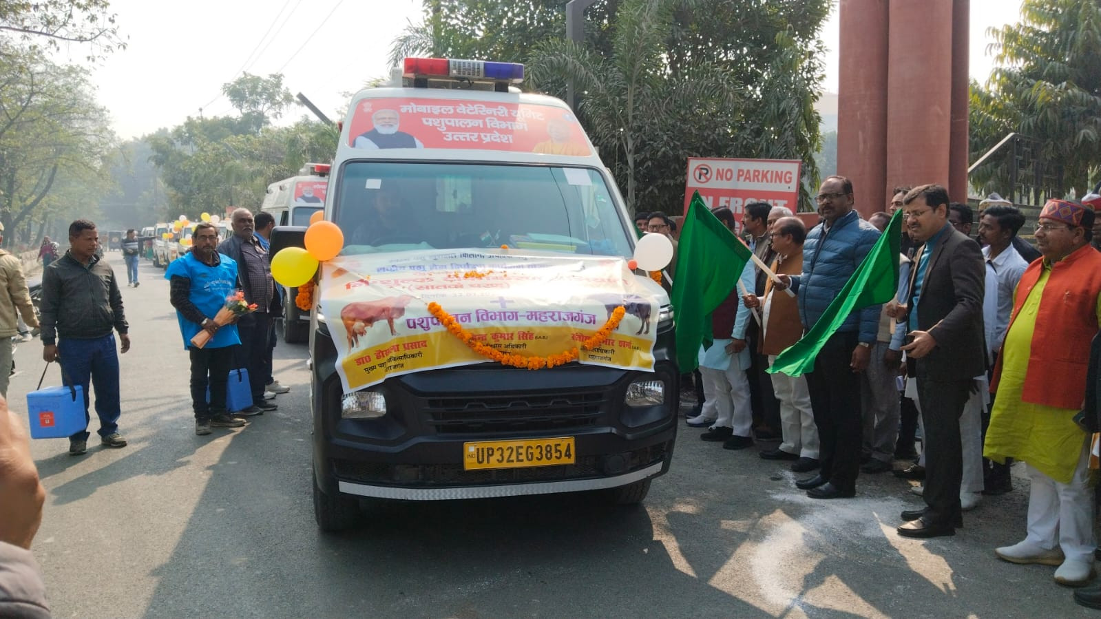 राष्ट्रीय पशुरोग नियंत्रण कार्यक्रम के अन्तर्गत जनपद-महराजगंज में खुरपका मुहपका टीकाकरण अभियान का शुभारम्भ जिला पंचायत अध्यक्ष रविकान्त पटेल,विधायक सदर जयमंगल कन्नौजिया, जिलाधिकारी संतोष कुमार शर्मा, मुख्य विकास अधिकारी महेन्द्र कुमार सिंह एवं मुख्य पशु चिकित्साधिकारी डा0 हौसला प्रसाद तथा जनपद- महराजगंज में पदस्थ समस्त उप मुख्य पशु चिकित्साधिकारी एवं पशु चिकित्साधिकारी, वेटेनरी फार्मासिस्ट, पशुधन प्रसार अधिकारी, पैरावेट / पशुमित्र / वैक्सीनेटर की उपस्थिति में हरी झण्डी दिखाकर किया गया।
