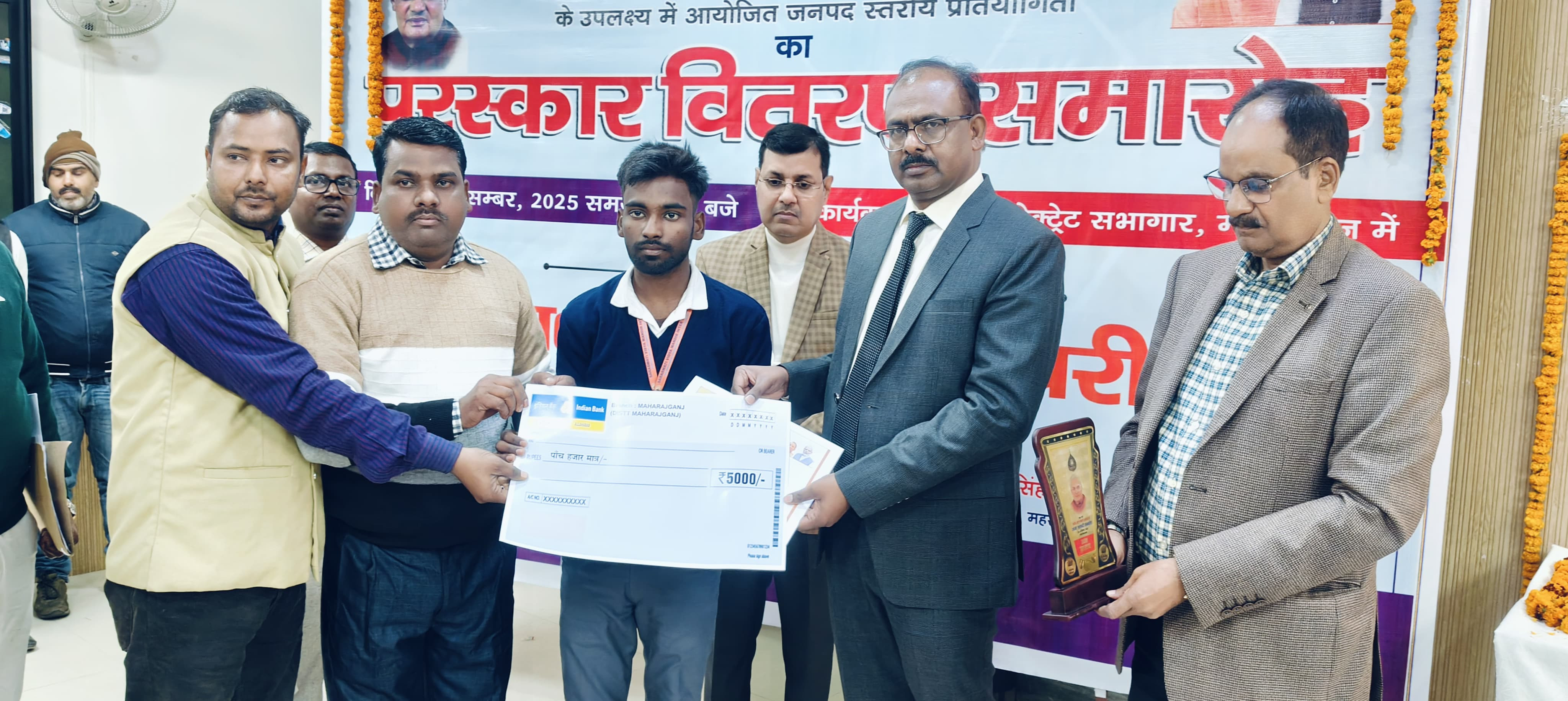 भारत रत्न पूर्व प्रधानमंत्री अटल बिहारी वाजपेई के जन्म शताब्दी के अवसर पर निबंध प्रतियोगिता में विजेता विशाल जायसवाल को पांच हजार का डेमो चेक, प्रशस्ति पत्र व स्मृति चिन्ह, द्वितीय स्थान प्राप्त अमर नाथ यादव को तीन हजार, प्रशस्ति पत्र व स्मृति चिन्ह, तथा तृतीय स्थान पर जागृति त्रिपाठी को दो हजार प्रशस्ति पत्र व स्मृति चिन्ह, भाषण प्रतियोगिता में प्रथम स्थान प्राप्त आर्दश पाण्डेय को दस हजार , द्वितीय प्राजंल यादव को पांच हजार व तृतीय स्थान प्राप्त करने वाले अवधेश को दो हजार पांच सौ का डेमो चेक प्रशस्ति पत्र तथा स्मृति चिन्ह एवं एकल काब्य पाठ में प्रथम स्थान प्राप्त घनश्याम पाण्डेय को दस हजार, उदय गुप्ता द्वितीय को पांच हजार व अनुराधा चौरसिया तृतीय को दो हजार पांच सौ सहित प्रशस्ति पत्र व स्मृति चिन्ह देकर सम्मानित किया गया।