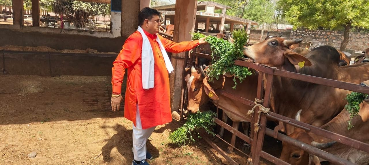 डॉ. ओ.पी. टांक ने पक्षियों के लिए परिंडें, गायों को चारा खिलाकर निभाएं सामाजिक सरोकार।